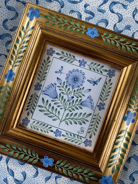 Large hand-painted hairbrush - Blue Indian Flowers