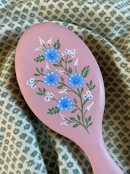 Large hand-painted hairbrush - Blue flowers