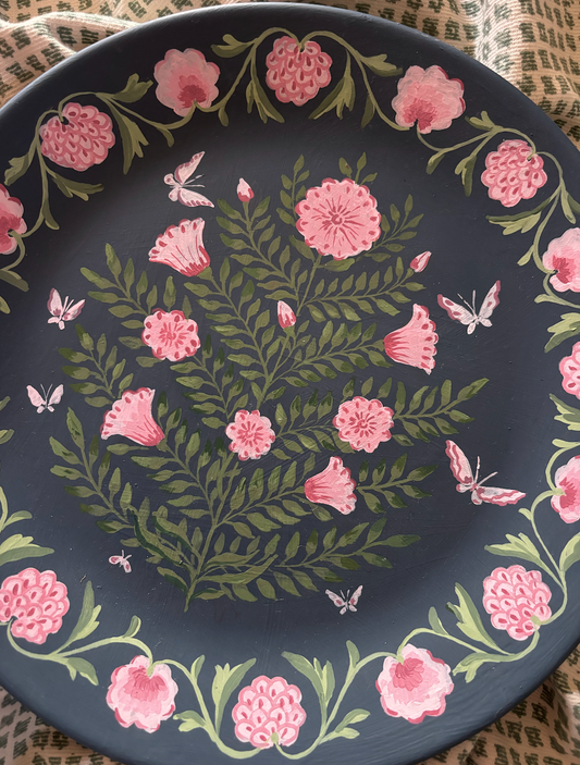 Large decorative plate - Indian Flower and Butterfly