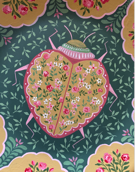 Large decorative plate - Beetle and Rose