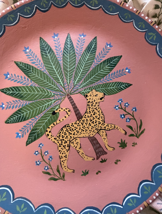 Large decorative plate - Leopard and palm