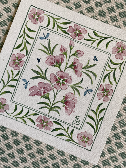 Miniature Watercolour painting - Lily of the valley with gingham bow