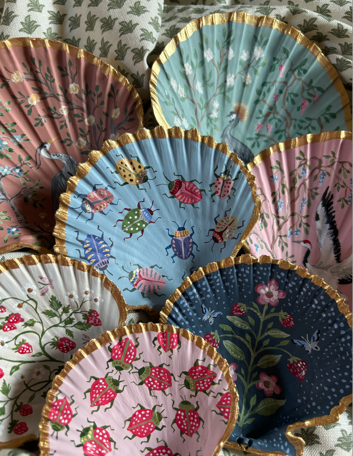 Decorative shell, hand-painted on both sides, with a golden edge.