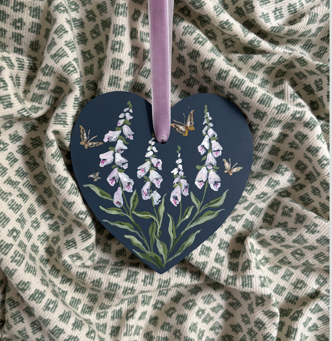 One hand-painted wooden heart that can be used as a gift tag or tree decoration!